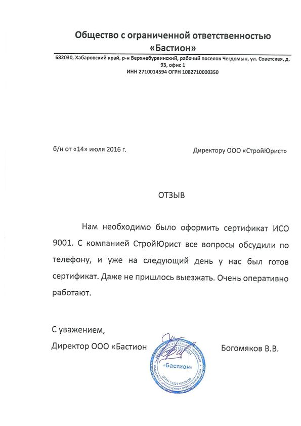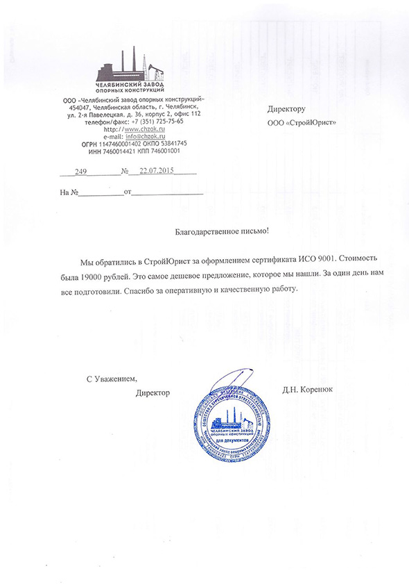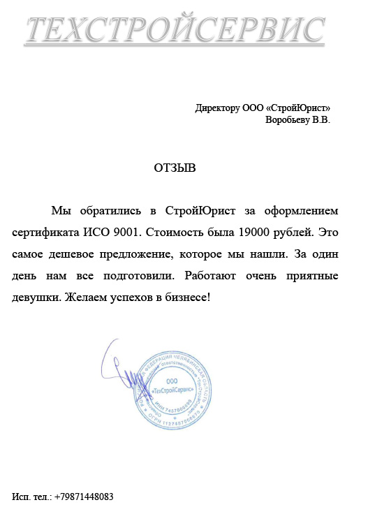 Отзывы клиентов "СтройЮрист" по ISO в Новочебоксарске