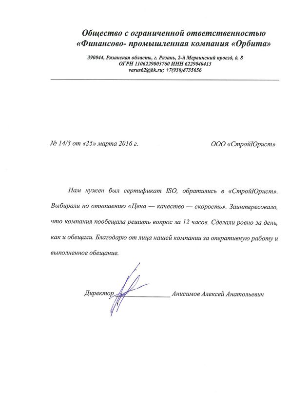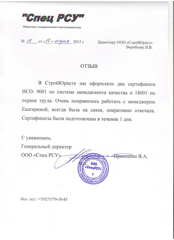 Отзывы клиентов "СтройЮрист" по ISO в Новочебоксарске