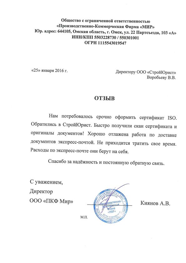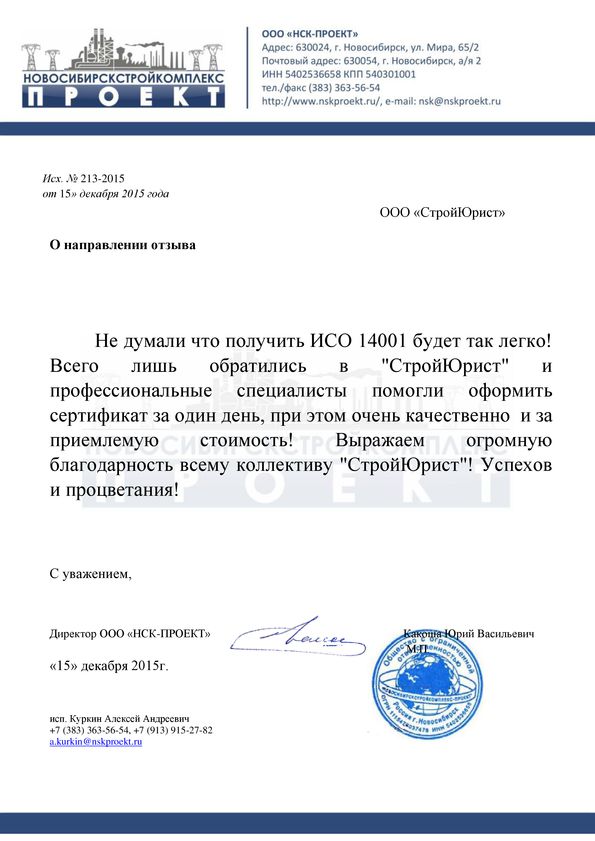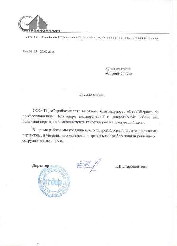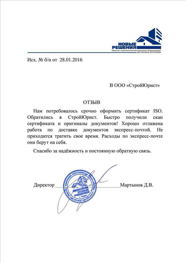 Отзывы клиентов "СтройЮрист" по ISO в Новочебоксарске
