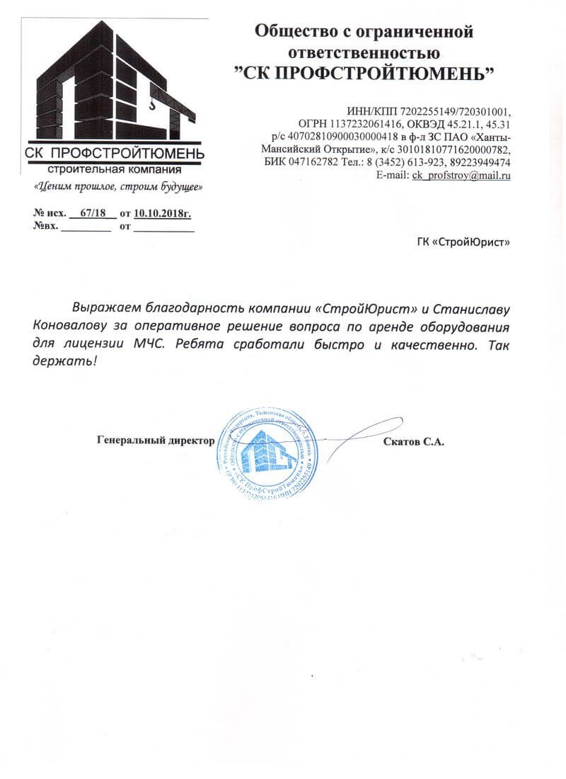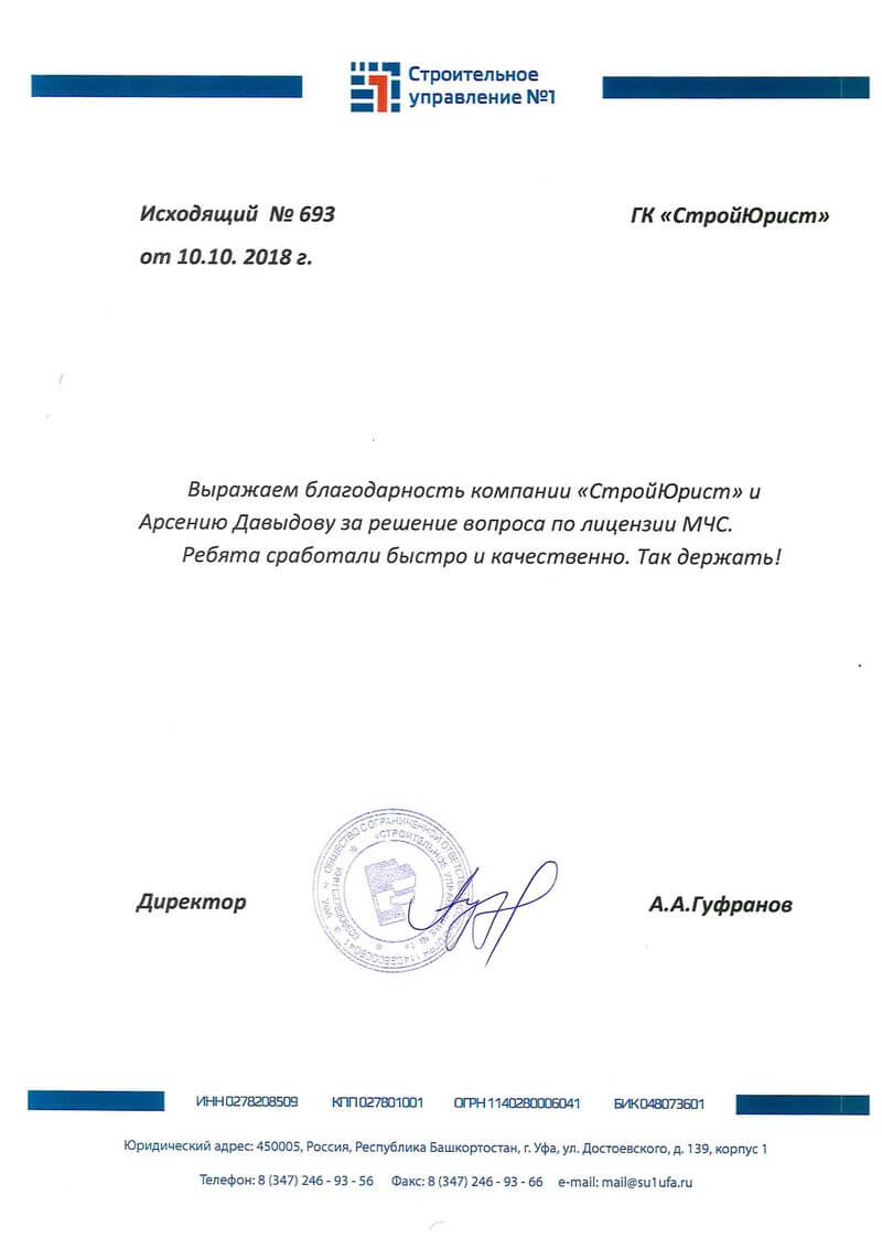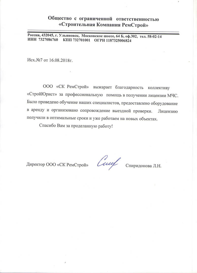 Отзывы клиентов "СтройЮрист" по лицензированию МЧС в Новочебоксарске
