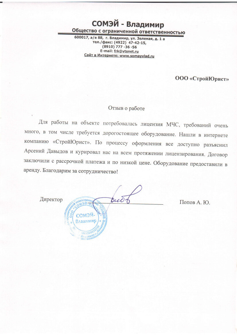 Отзывы клиентов "СтройЮрист" по лицензированию МЧС в Новочебоксарске