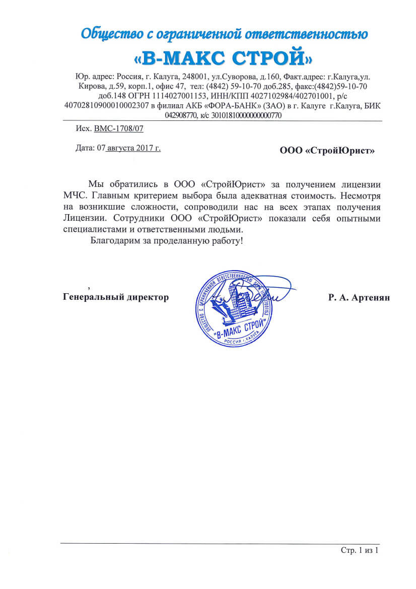Отзывы клиентов "СтройЮрист" по лицензированию МЧС в Новочебоксарске