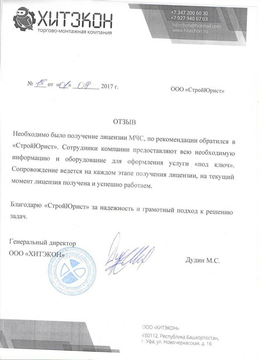Отзывы клиентов "СтройЮрист" по лицензированию МЧС в Новочебоксарске