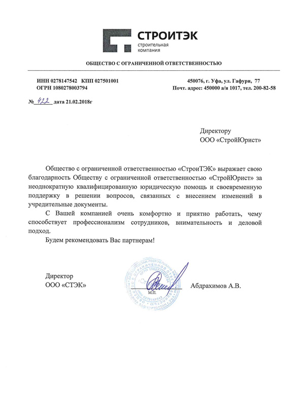 Отзывы клиентов "СтройЮрист" по регистрации фирм в Новочебоксарске
