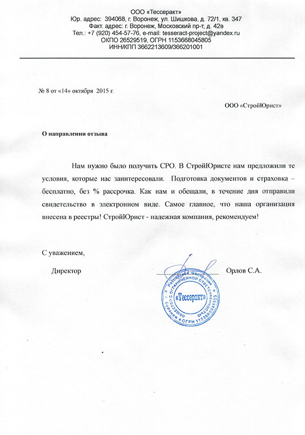 Отзывы клиентов "СтройЮрист" по вступлению в СРО в Новочебоксарске
