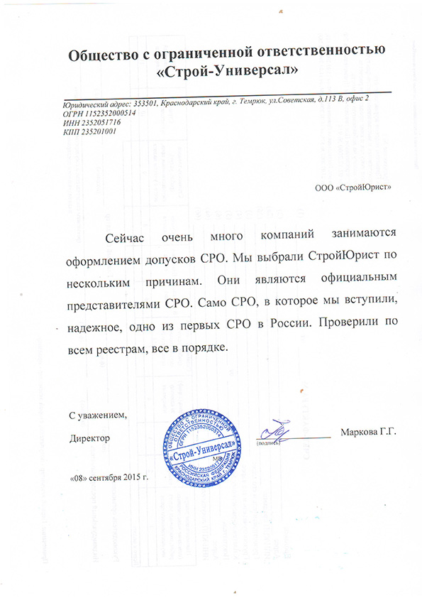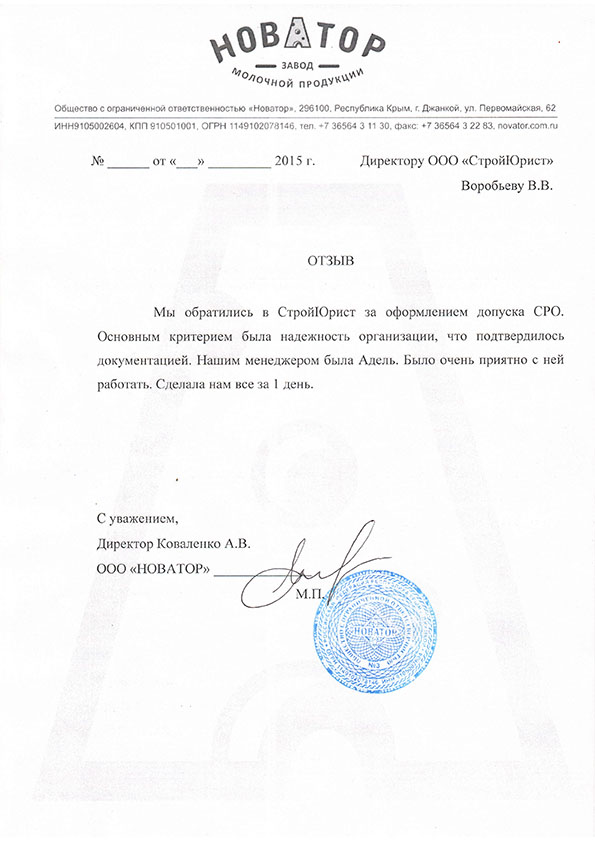 Отзывы клиентов "СтройЮрист" по вступлению в СРО в Новочебоксарске