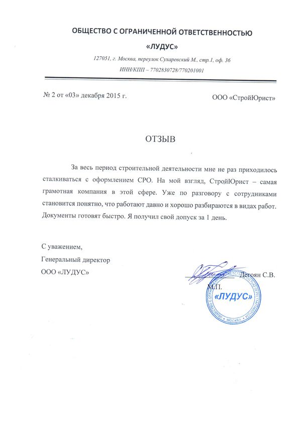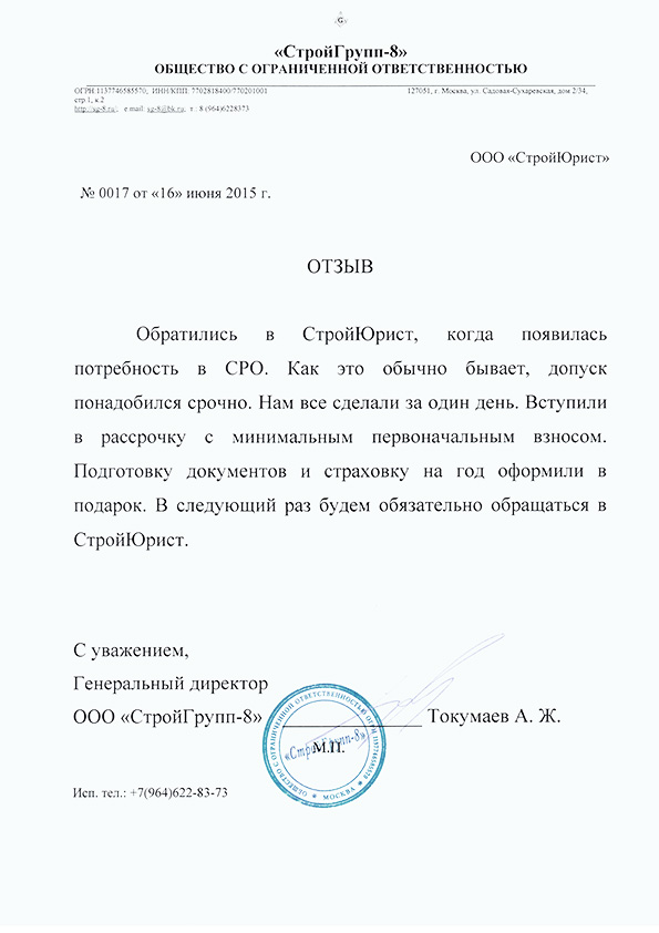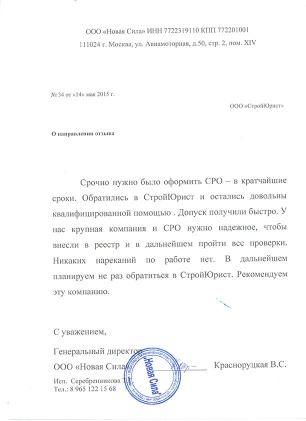 Отзывы клиентов "СтройЮрист" по вступлению в СРО в Новочебоксарске