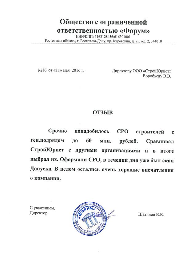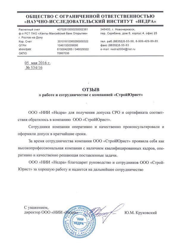 Отзывы клиентов "СтройЮрист" по вступлению в СРО в Новочебоксарске