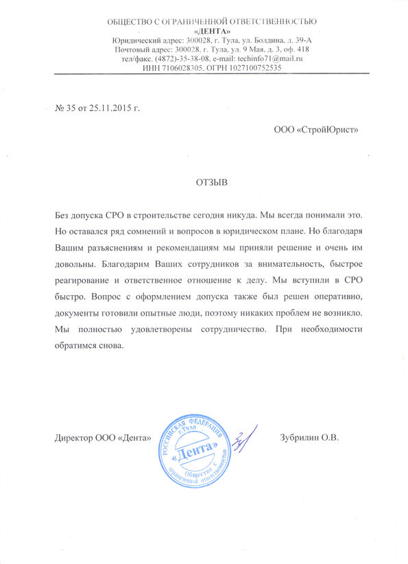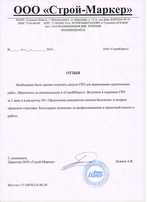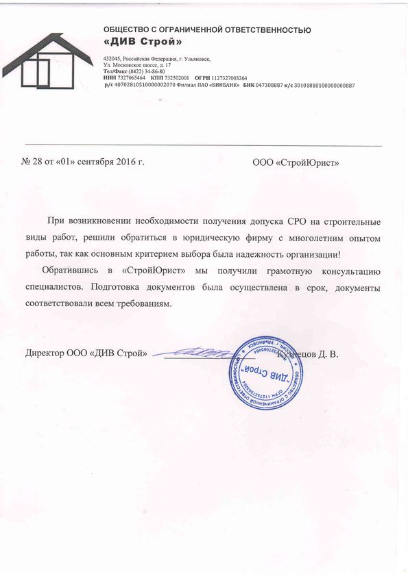 Отзывы клиентов "СтройЮрист" по вступлению в СРО в Новочебоксарске