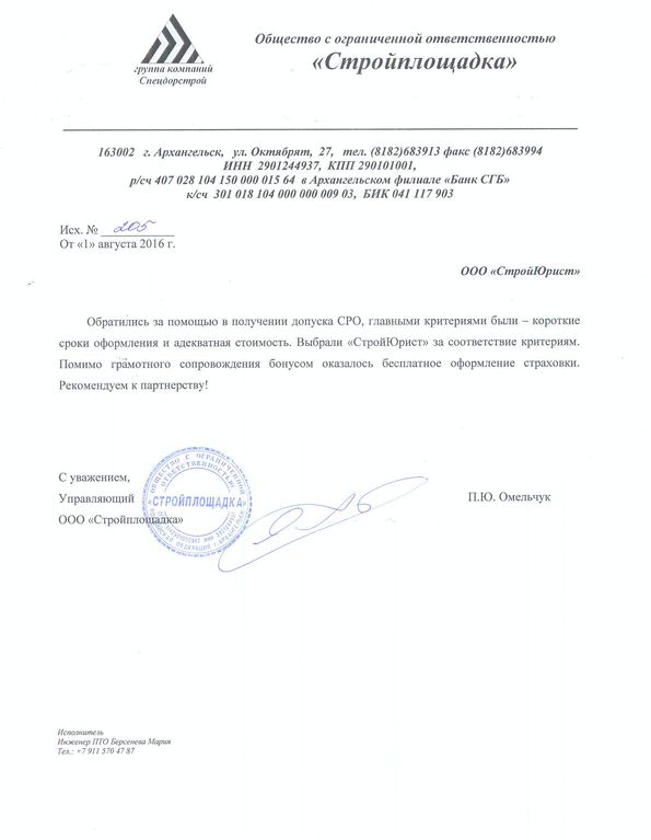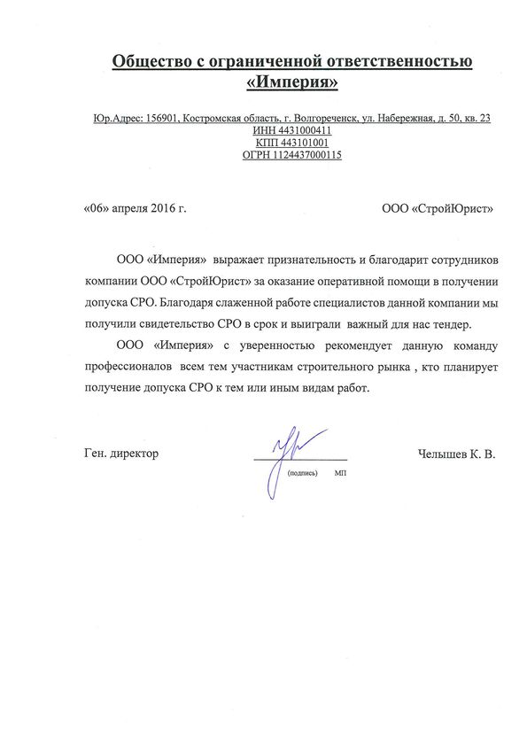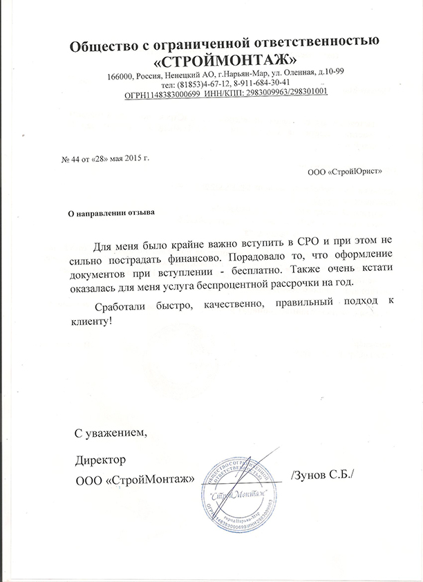 Отзывы клиентов "СтройЮрист" по вступлению в СРО в Новочебоксарске