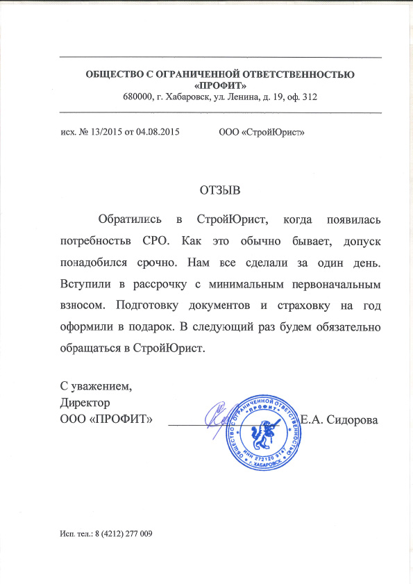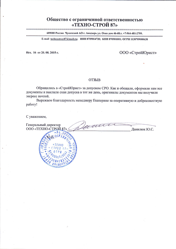 Отзывы клиентов "СтройЮрист" по вступлению в СРО в Новочебоксарске